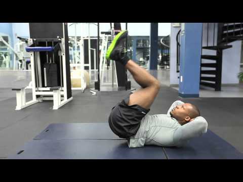 The bent leg hip raise is a basic core exercise for strengthening the lower abs. This exercise works the lower abs in the same way as a crunch works the upper abs. By bending the leg, the user should not feel a stretch in the hamstring, allowing him to focus on just the abs. Typically, the hands are put behind the head (see video above) but the raises may be performed with the hands across the chest or on the floor for balance. As this is a shorter motion, effort should be made to perform the exercise in a controlled manner rather than rapidly. This exercise is a safe core exercise for those with lower back problems, however, the user should be careful not to pull the legs past the point of any strain.
