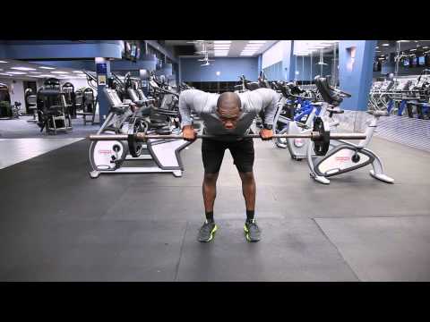 The bent over barbell row is a mass building for the middle and lower lats. There are multiple grip and body positions that can vary exactly what part of the muscle the exercise works. A wide grip will work the outer part of the lat muscle, while a close grip will work the inner part of the lat. Do not go closer than shoulder-width with the grip on this exercise. An underhand grip will work the forearms and will also work the lower part of the lat more. This exercise should not be used for those with low back problems. The weight needed to make it an effective exercise would likely put too much pressure on the low back. Instead of this exercise, those with low back problems should use a seated row machine with a chest pad.