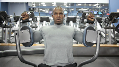 The machine fly is a primarily shaping and developing motion for the inner chest. It is a good way to isolate the muscle, though the stabilizer muscles of the chest are not used to the set motion of the machine. The starting position can be varied, allowing the user to determine the exact range of motion for their exercise. This is beneficial at preventing injury or if the user already has an injury, at preventing further pain. The varied starting position also allows the user to determine the amount of stretch they get in the muscle. If using a lower weight, the starting position should be further behind the chest, while if a higher weigh is being used, the range of motion can be shorter. The machine fly comes in one of two designs. The first does not offer forearm support and allows the user to change elbow position through the movement. The second (see video above) isolates the chest more because the forearms and elbows are locked in place.