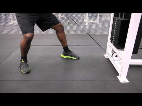 The one arm cable row is a primarily shaping and developing motion for the middle back. By using one arm at a time, the user is able to isolate each side of the lat to balance the muscles of the back. This exercise can be performed in a variety of positions. The feet can be close together or staggered. A staggered foot position, where the foot opposite of the arm performing the exercise is placed in front of the body, can help to balance the body weight and make the exercise easier on the low back. The free arm can either be placed against the machine for support, or rested on the knee or hip. The keys when performing the one arm cable row is to get the longest range of motion possible and to perform the exercise in a deliberate manner.