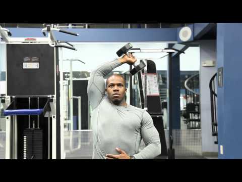 The one arm dumbbell tricep extension is a variation on the dumbbell tricep extension. Whereas the latter is usually used for size and strength, the one arm version is usually to shape and develop the muscle. Performing the exercise with one arm provides two distinct benefits. The first is the longer range of motion. The user is pulling the dumbbell from almost above the opposite shoulder. This provides a very good strength of the triceps. The second benefit is that the arms are worked independently. This provides the user the opportunity to keep the strength in the arms balanced. Because this exercise is usually performed at a lower weight, users with low back pain may find this exercise preferable to the two-handed variety.