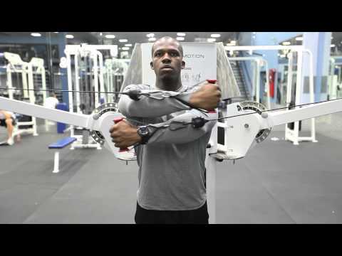 This exercise is a shaping and development motion that works the inner chest muscle. It can be performed with very low weight because it is performed at a high rep range. By crossing the handles over at the end of the movement, you can work the inner chest more than if this were performed on a machine or with dumbbells. The handle position be adjusted to change the starting position and determine the range of the movement. This exercise is great for creating clear definition between the pecs.