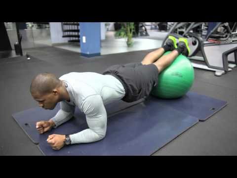 Step 1. With you feet on an exercise ball, assume a pushup position with your hands directly under your shoulders.