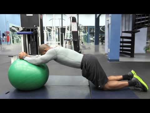 Step 2. Brace your core and slowly roll the ball forward, straightening your arms and extending your body as far as you can without allowing your lower back to collapse.